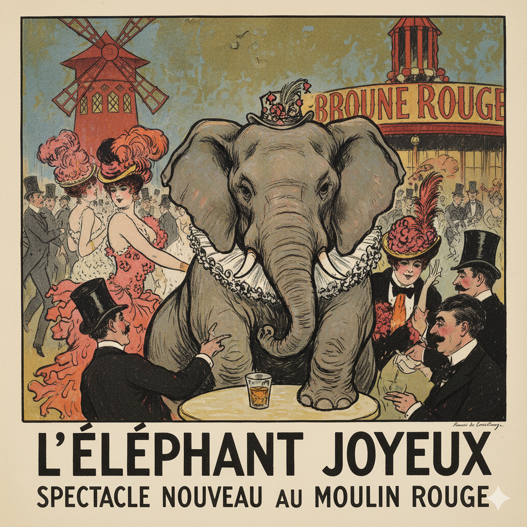 Una ciudad medieval llena de gente que se dedican a lo suyo sin notar a un elefante.